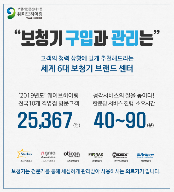 세계 6대 보청기 브랜드(벨톤, 오티콘, 스타키, 포낙, 와이덱스, 시그니아)를 모두 취급하는 웨이브히어링의 윤민호원장은 청각학 석사 출신에, 박사 과정을 진행중인 청각/보청기 전문가로 유아부터 노인까지 다양한 연령층의 임상 전문청능사 노하우로 경기 여주, 광주 지역에서도 방문하는 센터를 운영하고 있다고 전했다. 또한 보청기 제조사별 다양한 제품의 특징과 장/단점을 바탕으로 난청인을 위한 말소리 분별력 향상에 초점을 두고, 일상생활과 직장에서 의사소통에 만족할 수 있도록 고객을 위해 노력하는 센터라고 덧붙였다.
