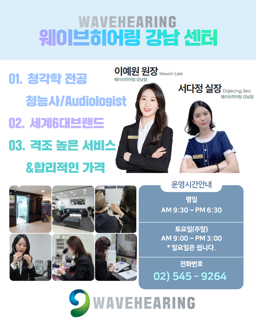 4월 이벤트와 또 다른 문의 사항은 웨이브히어링 대표 번호나 웨이브히어링 강남 직영점으로 전화하면 친절한 안내를 받을 수 있다.