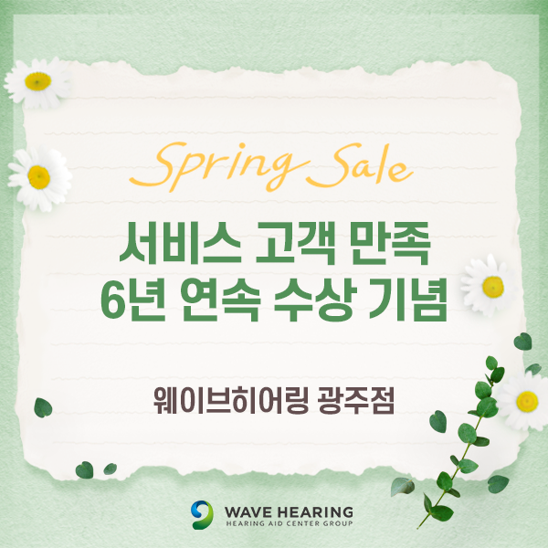 전남 대표 보청기 센터 웨이브히어링 광주점(오티콘보청기, 금강보청기)이 ‘소비자가 뽑은 서비스 고객 만족 대상’ 6년 연속 수상을 기념하여 ‘봄날 보청기 할인 대잔치’ 행사를 진행한다고 밝혔다.