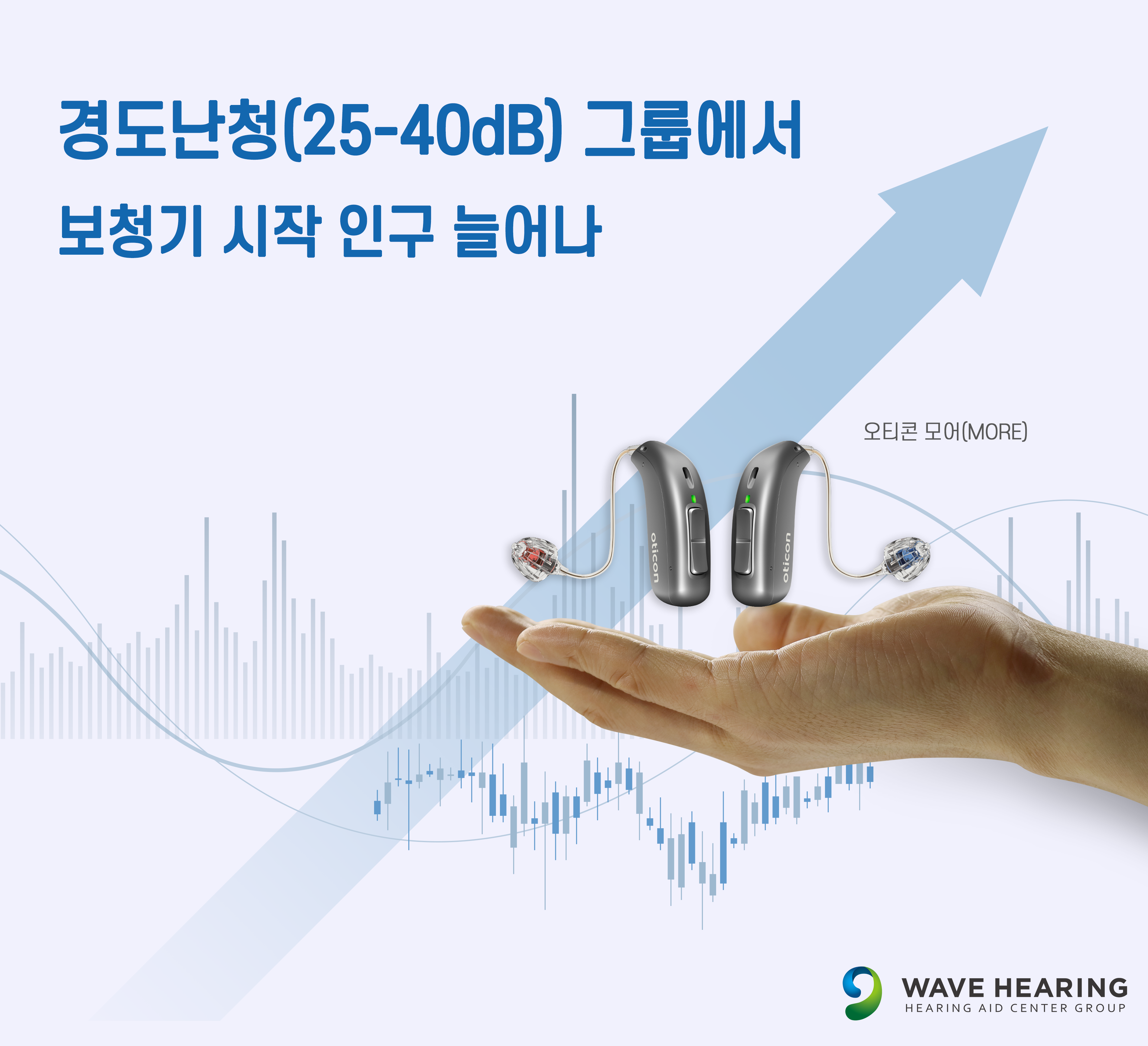 국내 보청기 전문 그룹 웨이브히어링(㈜아게이트) 송 욱 대표는 이러한 수치 증가는 코로나19 장기화로 인한 일상이 된 마스크 착용으로 가벼운 경도 난청자의 의사소통이 어려워진 이유가 제일 크다고 밝혔다. 웨이브히어링 청각연구팀은 최근 3년간 연도별 보청기 고객 관련 데이터 비교 시 2021년 보청기 판매수량이 2019년 수량보다 약 10% 정도 증가하였고 보청기를 구입하는 난청 수준(청력손실 정도) 중 경도 난청(25~40dB) 대상자가 약 34% 증가했다고 보고하였다. 이것은 건강보험심사평가원의 난청진료환자 증가와 비슷한 양상이며, 경도 난청 그룹의 보청기 시작 인구가 늘어난 것을 확인할 수 있는 수치이다.