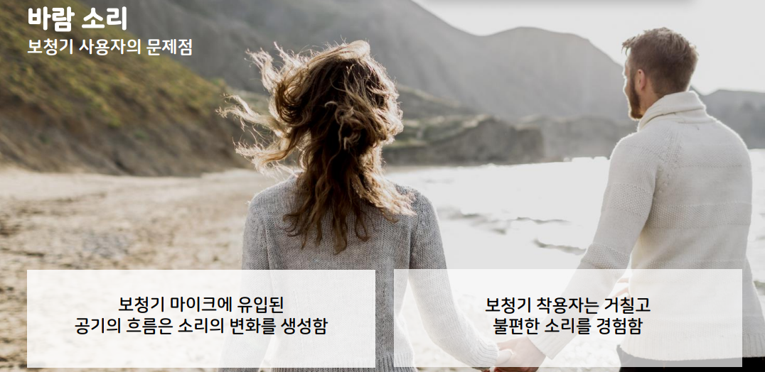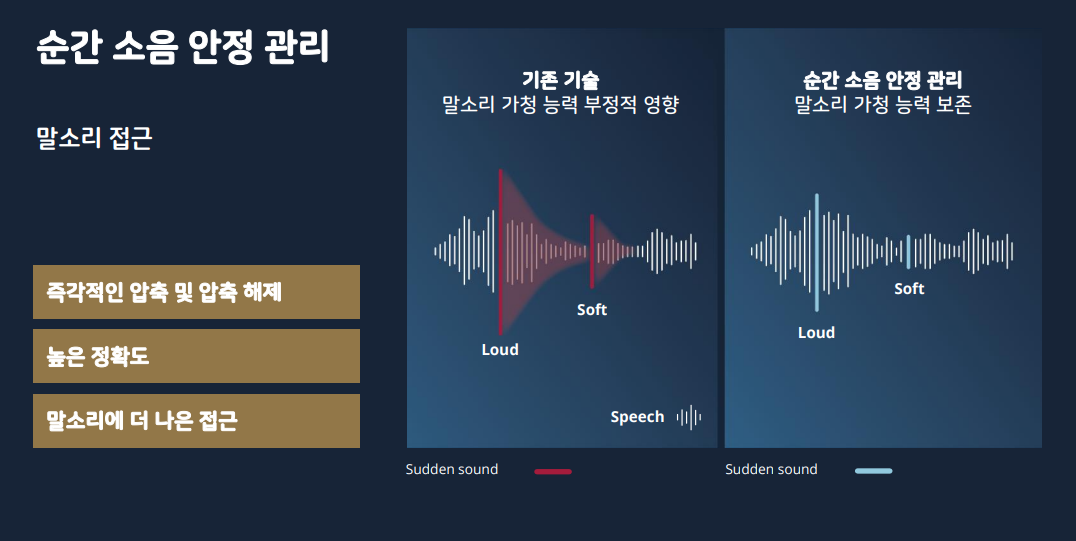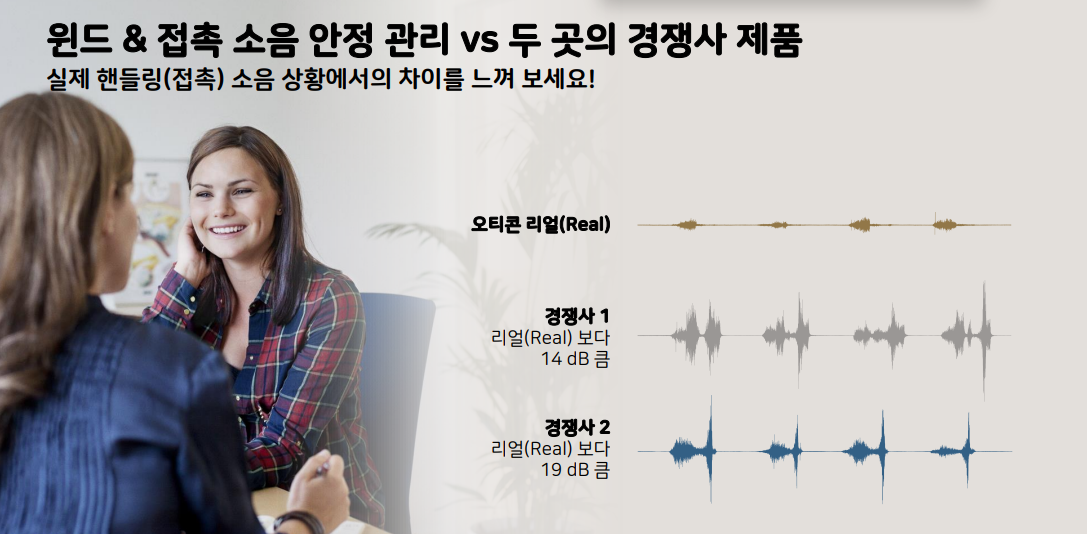 ※ 보청기 착용자가 느끼는 주된 이슈 중의 하나가 윈드 노이즈(바람이 불 때 크게 들리게 되어 말소리 분별에 영향을 많이 줍니다. 특히 창문을 열고 운전한다 거나 바람이 불 때 야외 활동 하시는 분들의 중점적인 애로사항)와 접촉 소음(최근 마스크를 모두 사용하니 마스트 탈착시, 옷을 스치는 소리, 모자를 쓸 때, 여자분들의 경우 머리를 넘긴다거나 할 때 보청기 마이크 주변에 손이 가면 발생하는 접촉 소음을 말하는데 제가 직접 들어보니 이런 부분이 많이 개선되었습니다.)