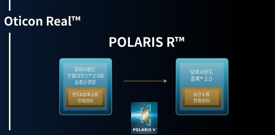 오티콘 신제품 ‘리얼(real)’에 대한 스펙을 보자면 기술적인 용어를 잠시 적용해 보겠습니다. 이번 오티콘사에서 설명하는 핵심적인 내용만 뽑아 보았습니다. 포인트는 '사용자 입장에서 말소리 분별을 확보하기 위해서 소음제거 부분 특히 바람소리, 접촉 소음 등을 상당 부분 처리하여 보다 깔끔하고 선명하게 말소리 분별을 보강하겠다' 입니다.